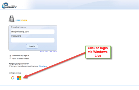 If you have a windows live account, you can use that to login to OfficeClip instead of your OfficeClip login and password.