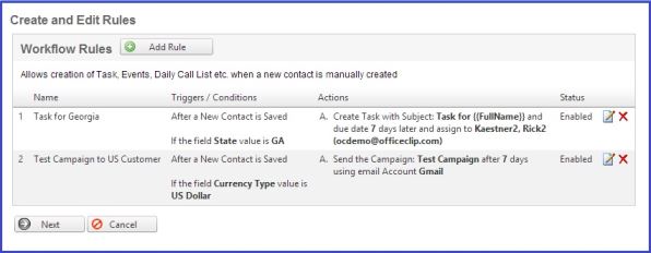 The new workflow module allows you to set rules for the contacts and customers that triggers automatically after a predetermined intervals. The following actions are currently supported: